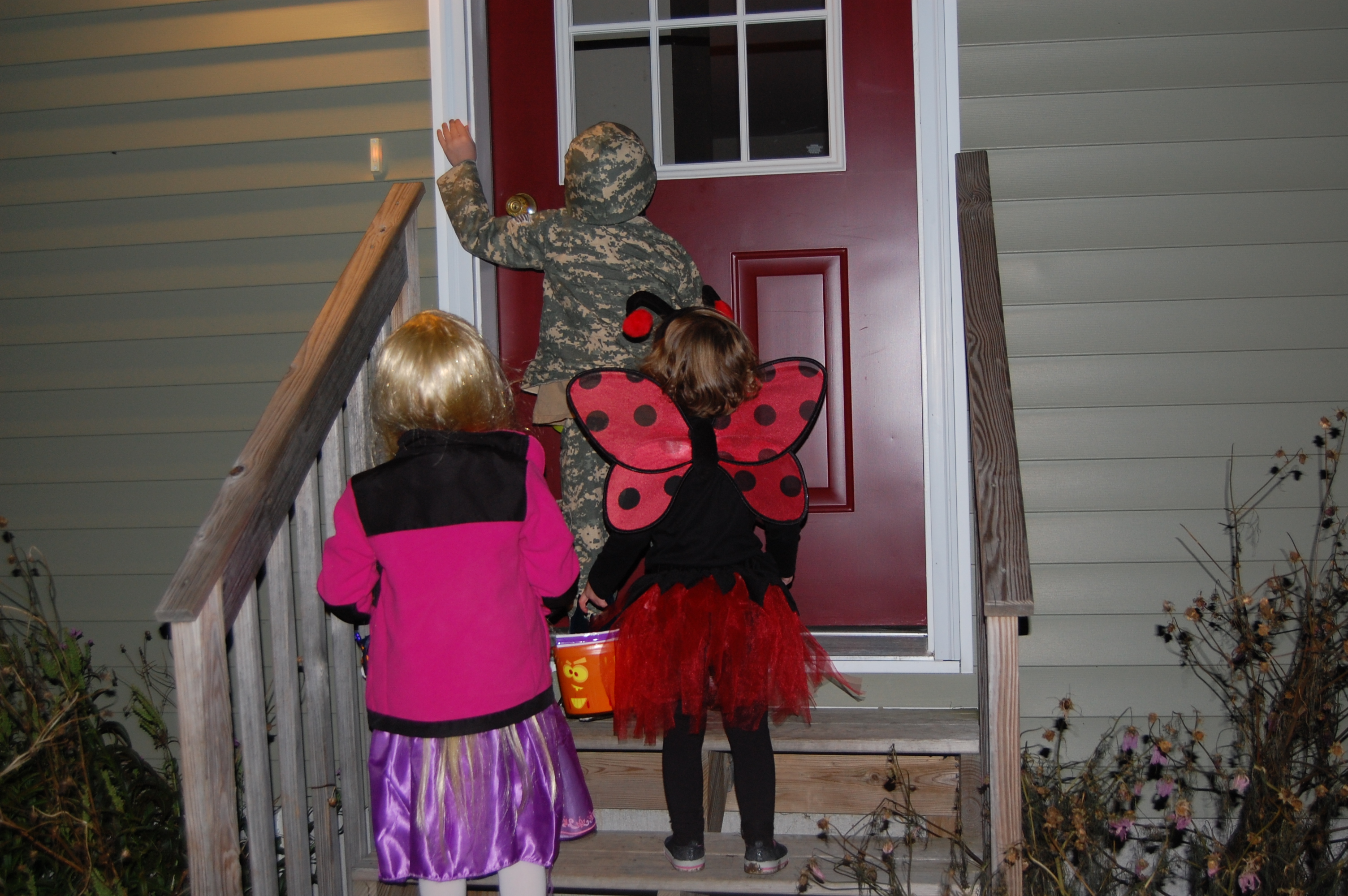 Scorch loved being a Solider although exactly what kind of solider he was was up for debate. The Bean was the cutest Lady Bug in town even though she only kept on her wings 50% of the time. We trick or treated with some of our oldest friends and the kids were so exciting they were shaking.