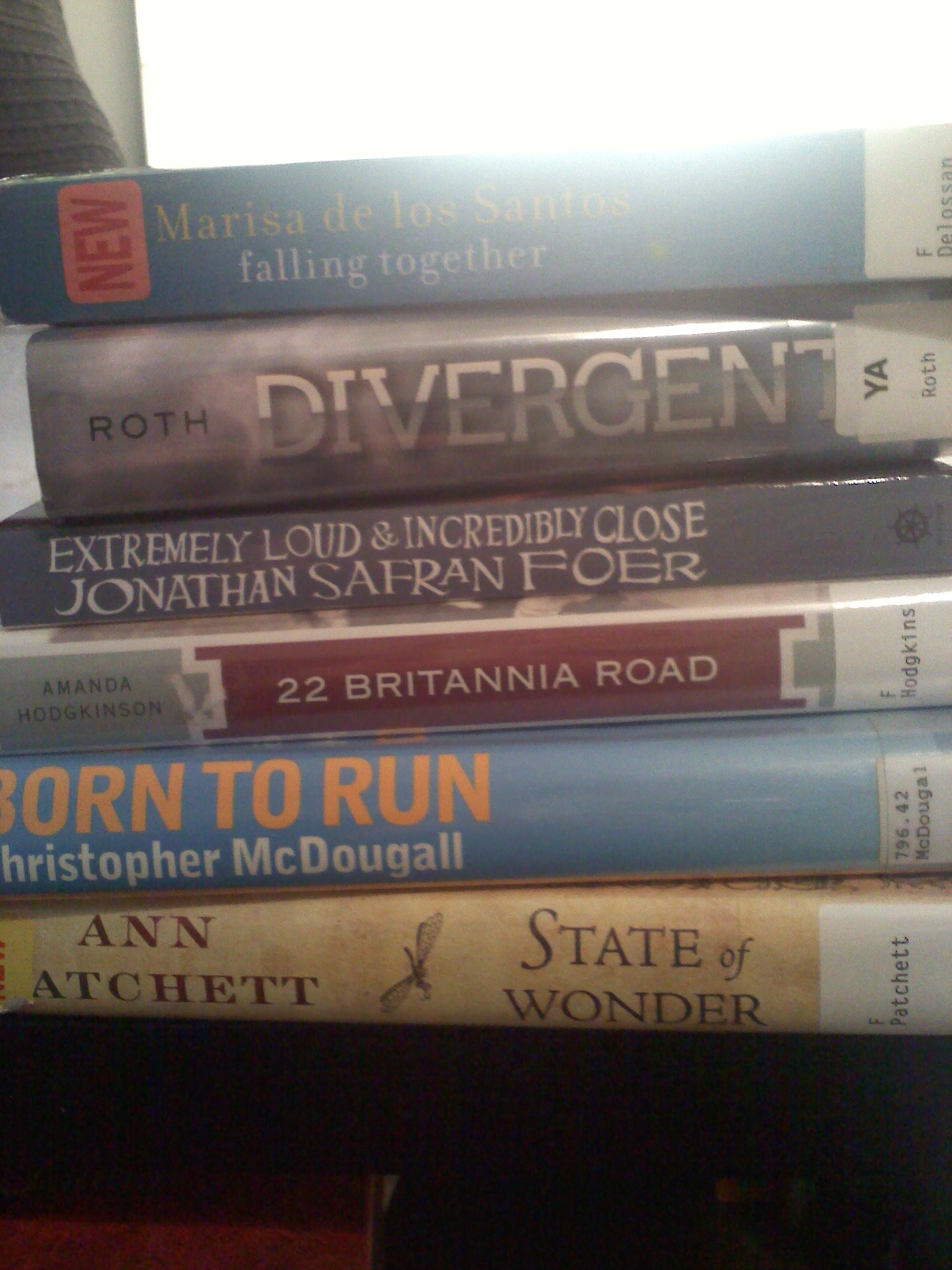State of Wonder and Divergent are on my list too. I just finished one called The Dirty Life by Kristin Kimball; I found it fascinating. Two more I have in my pile are Set This House in Order and The Fault in Our Stars.